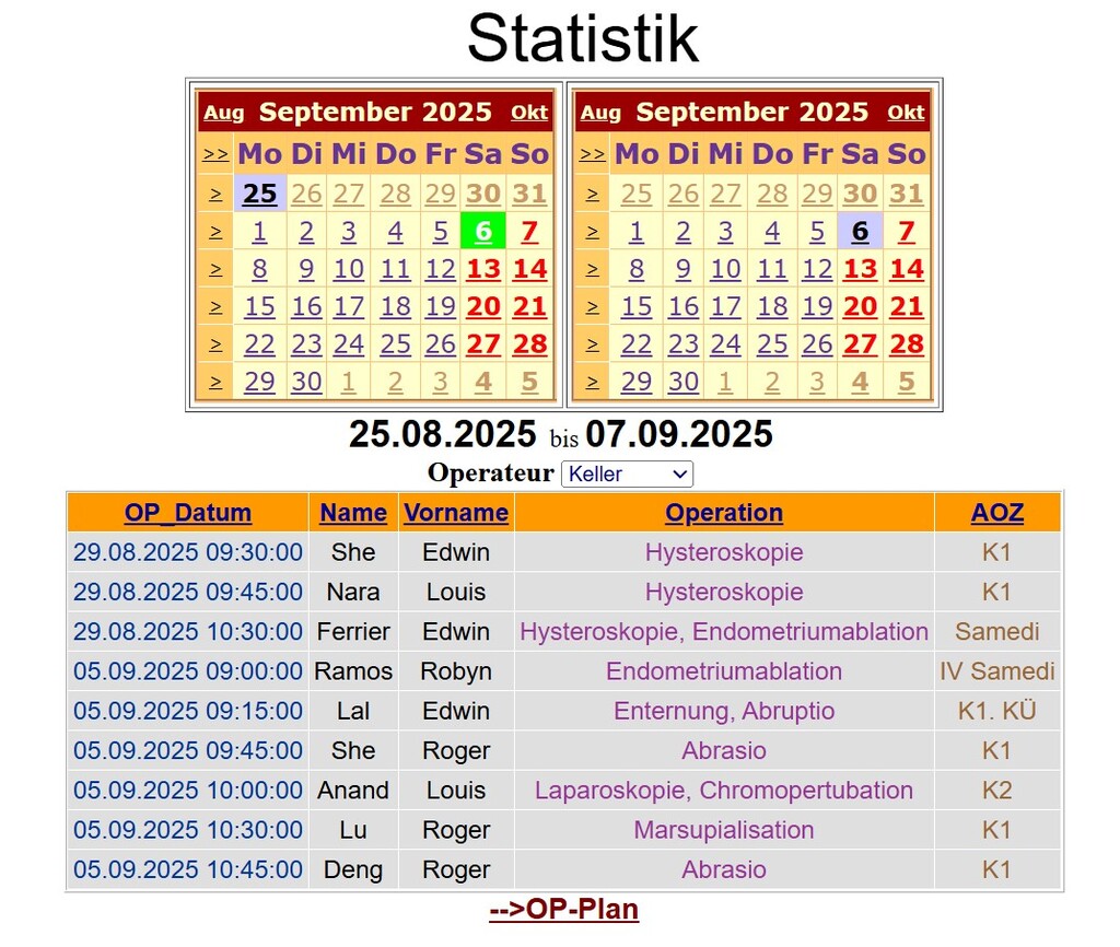 • neben dem Kalender steht die jeweils letzte Nummer des OP-Buchs, kein "Zurückblättern" notwendig