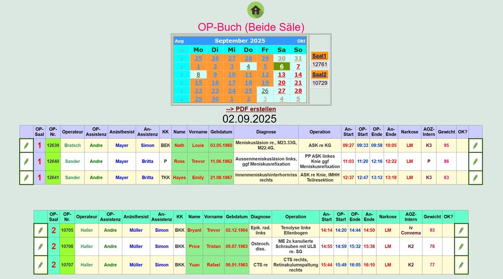 • die OP's in den jeweiligen Sälen können direkt im OP-Buch gespeichert werden